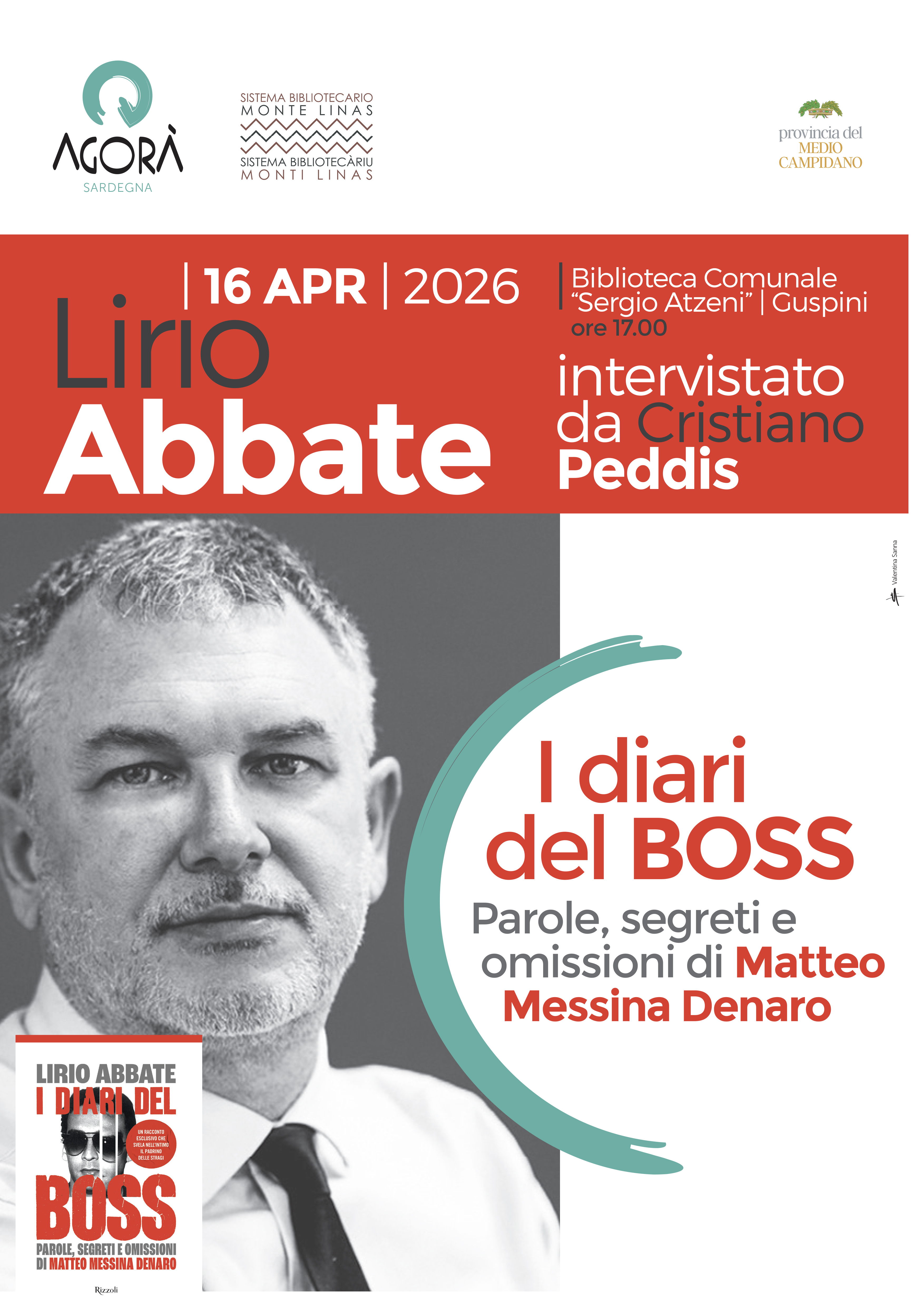 Giovedì 16 aprile alle 17, presso la Biblioteca Comunale, Cristiano Peddis intervisterà Lirio Abbate, autore del libro "I diari del Boss - Parole, segreti e omissioni di Matteo Messina Denaro"