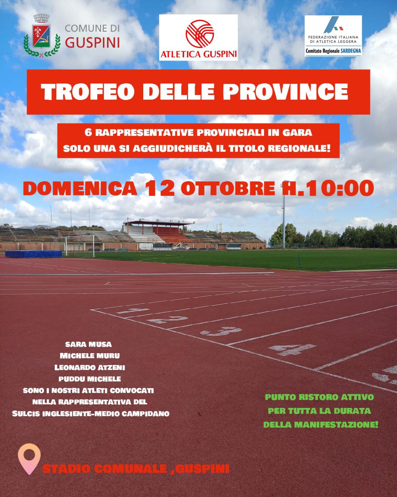 Atletica e passione in pista! Domenica 12 ottobre 2025, lo Stadio Comunale di Guspini sarà il palcoscenico di una grande giornata di sport e partecipazione con il “Trofeo delle Province”, manifestazione organizzata dall’ASD Atletica Guspini con il patrocinio del Comune di Guspini e della Federazione Italiana di Atletica Leggera – Comitato Regionale Sardegna.