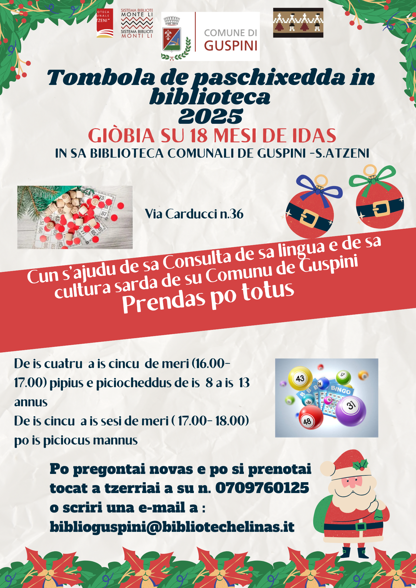 Anche quest’anno la Biblioteca ospita la Tombola de paschixedda, un appuntamento molto atteso che unisce gioco, tradizione e conoscenza del territorio.