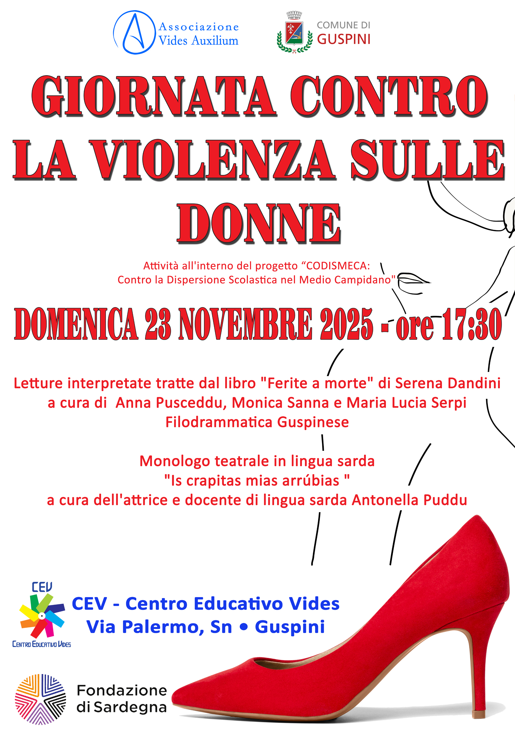 Domenica 23 novembre 2025, alle ore 17:30, il Centro Educativo Vides (Via Palermo, Guspini) ospiterà una serata di sensibilizzazione dedicata al tema della violenza contro le donne.