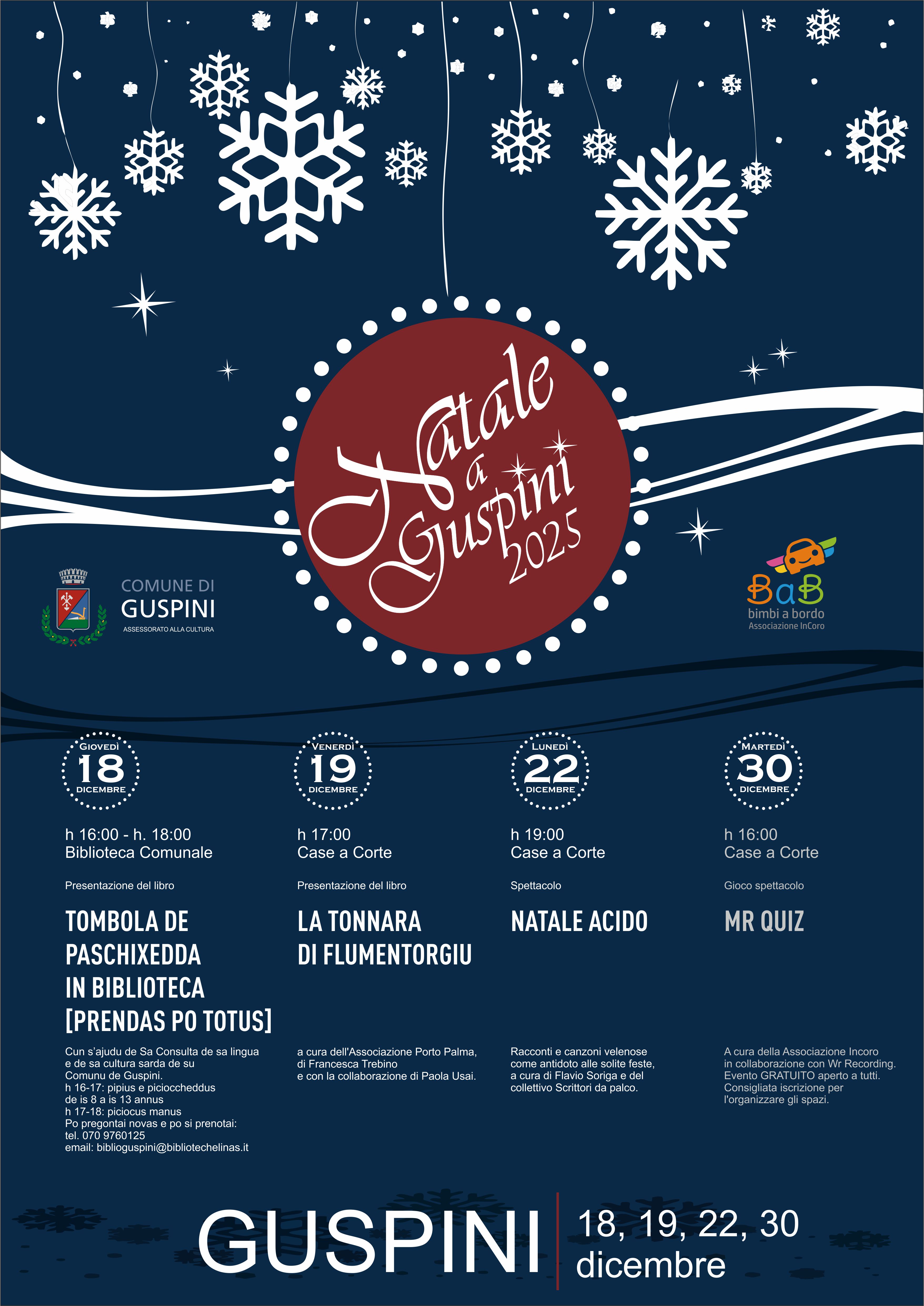 - Natale a Guspini 2025: al via i primi appuntamenti del programma culturale